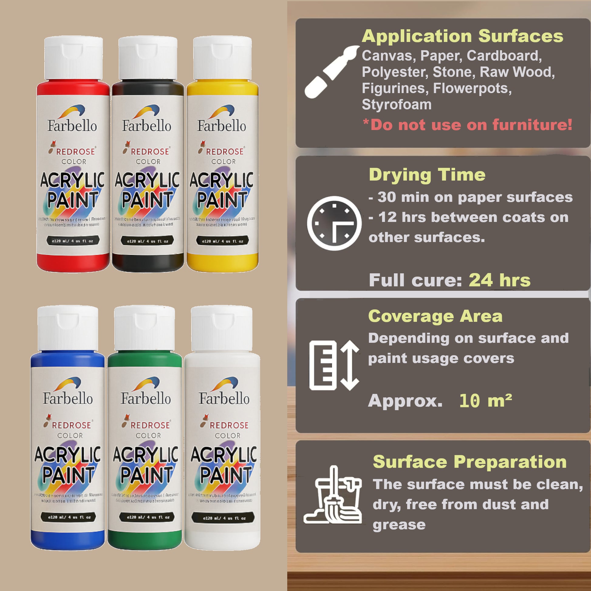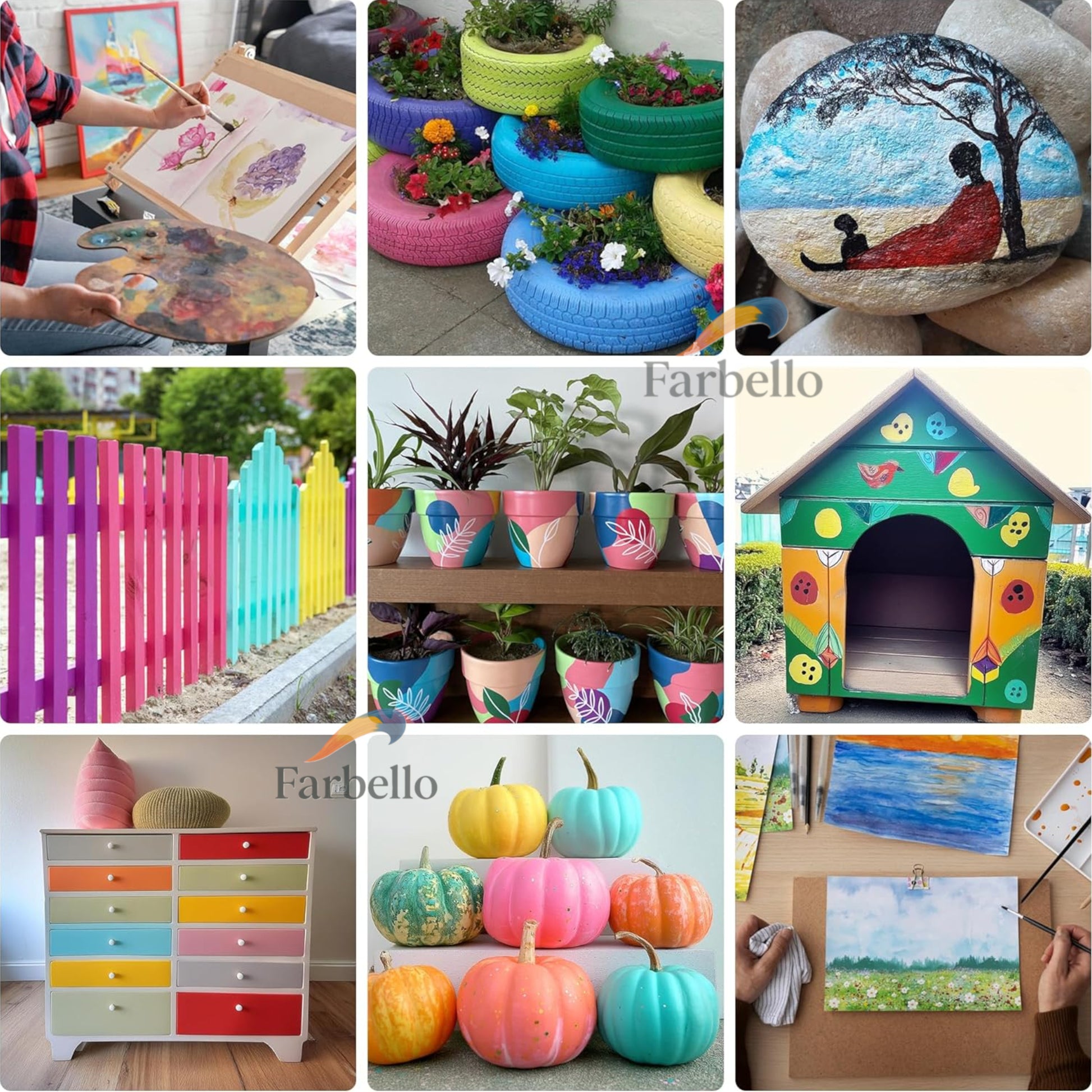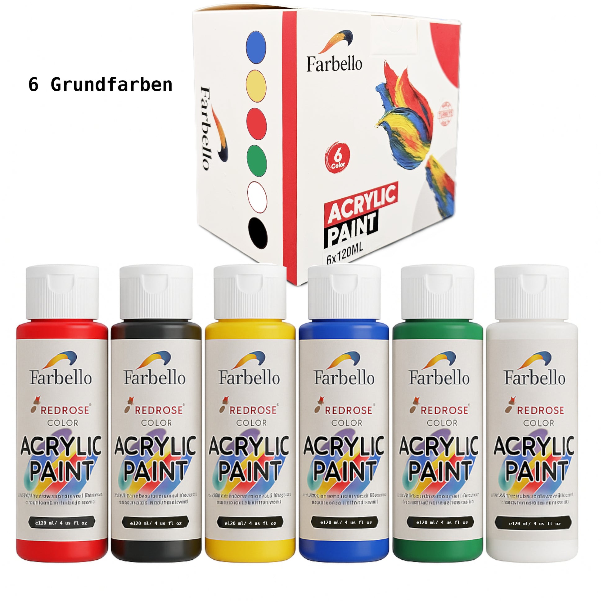 Farbello Acrylfarben Set 120 ml – Hochpigmentierte Farben für Leinwand, Holz, Stein & mehr